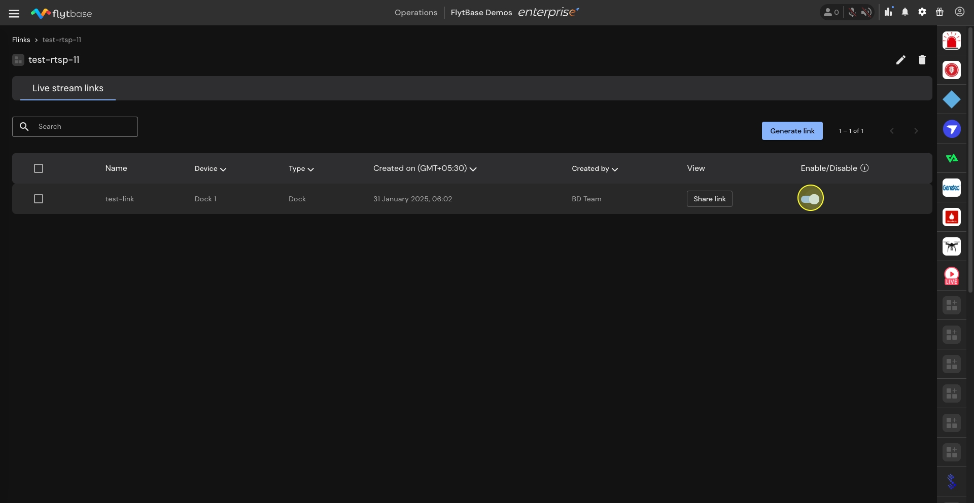 In the Type section, select either the Dock, Drone FPV, or the Drone Payload view, depending on your preference. Click on Generate Link.