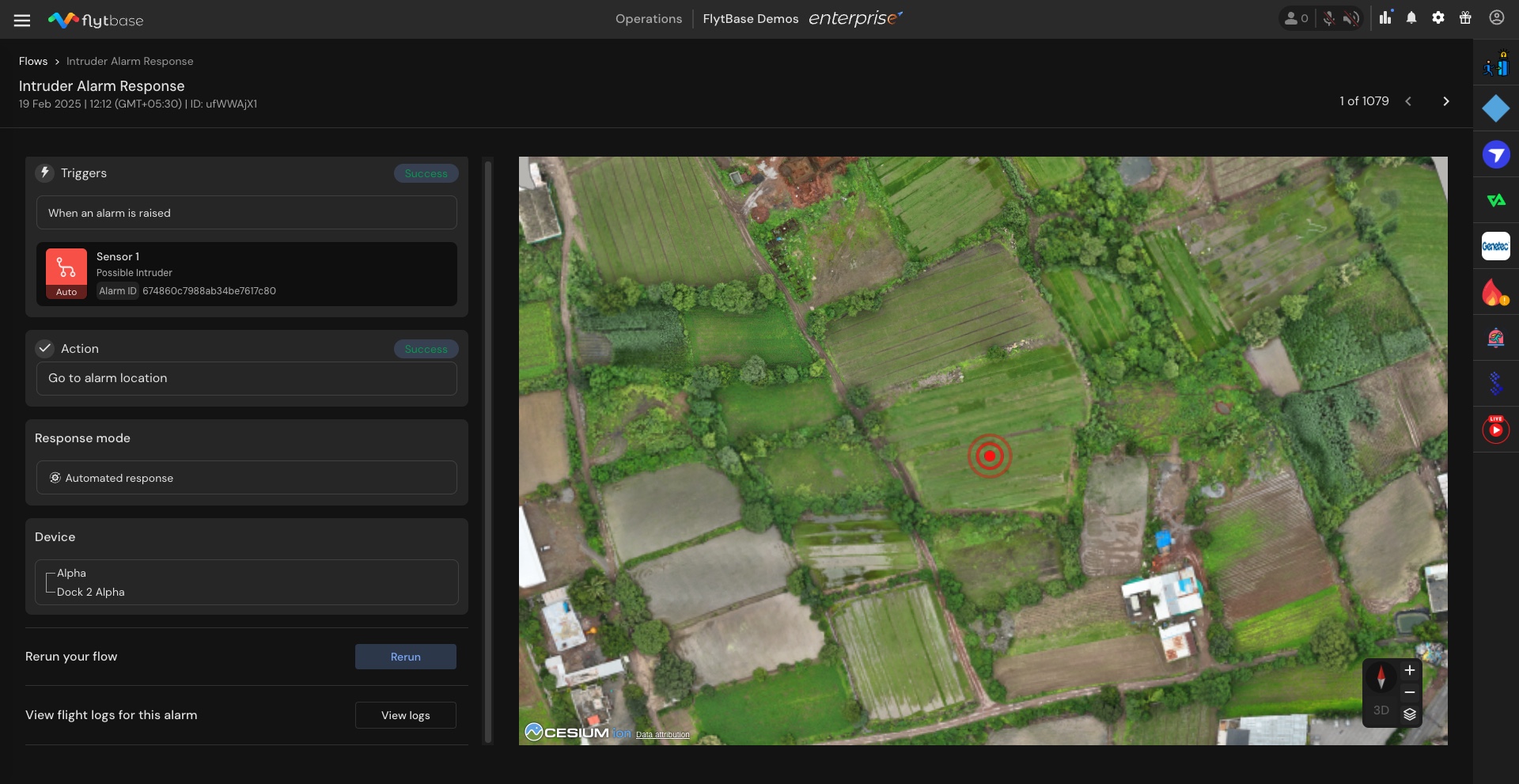 * **Flight Logs**: Access logs from the flight conducted in response to the alarm.
