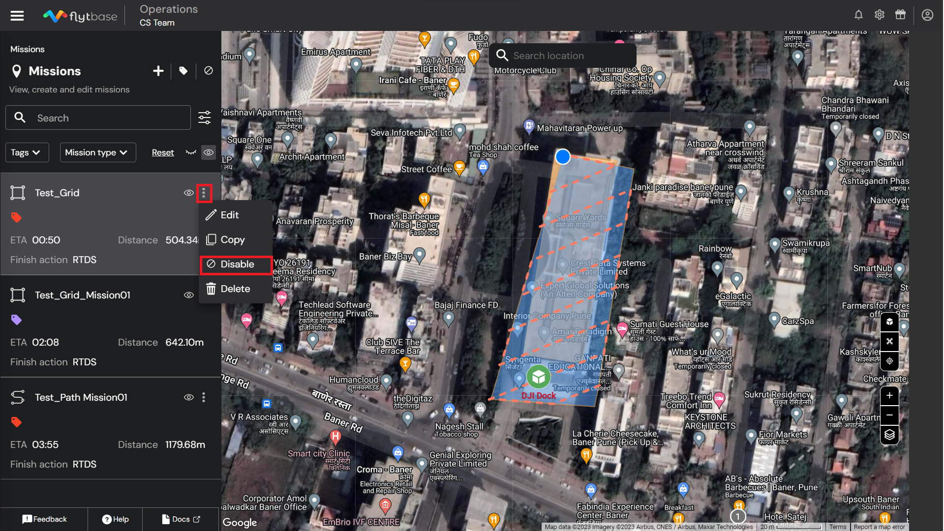 3. **Disable Missions** <picture><source srcset="https://1675645432-files.gitbook.io/~/files/v0/b/gitbook-x-prod.appspot.com/o/spaces%2FTfYUUwVnoRyxqEi8UiRV%2Fuploads%2FfbyxBbFO4ZR2kXr4zclV%2FVector%20(2).png?alt=media&#x26;token=9849786d-3e7d-48fc-8b67-18eb6643620a" media="(prefers-color-scheme: dark)"><img src="https://1675645432-files.gitbook.io/~/files/v0/b/gitbook-x-prod.appspot.com/o/spaces%2FTfYUUwVnoRyxqEi8UiRV%2Fuploads%2FQMkG1WQuylJ4knJUMe59%2FFrame%202609576.png?alt=media&#x26;token=b914c710-38c0-489f-9949-cea332ddacea" alt="" data-size="line"></picture>: A centralized repository for all missions that have been disabled from the mission planning tab. These missions are archived and are no longer visible in the missions panel and cannot be launched.