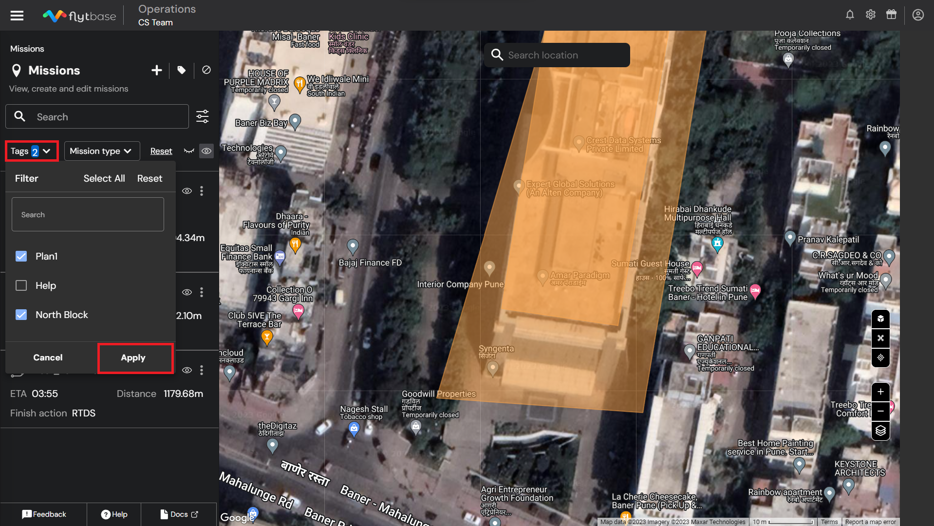 Operators can also apply a tag by choosing one from the tags field below the mission name.