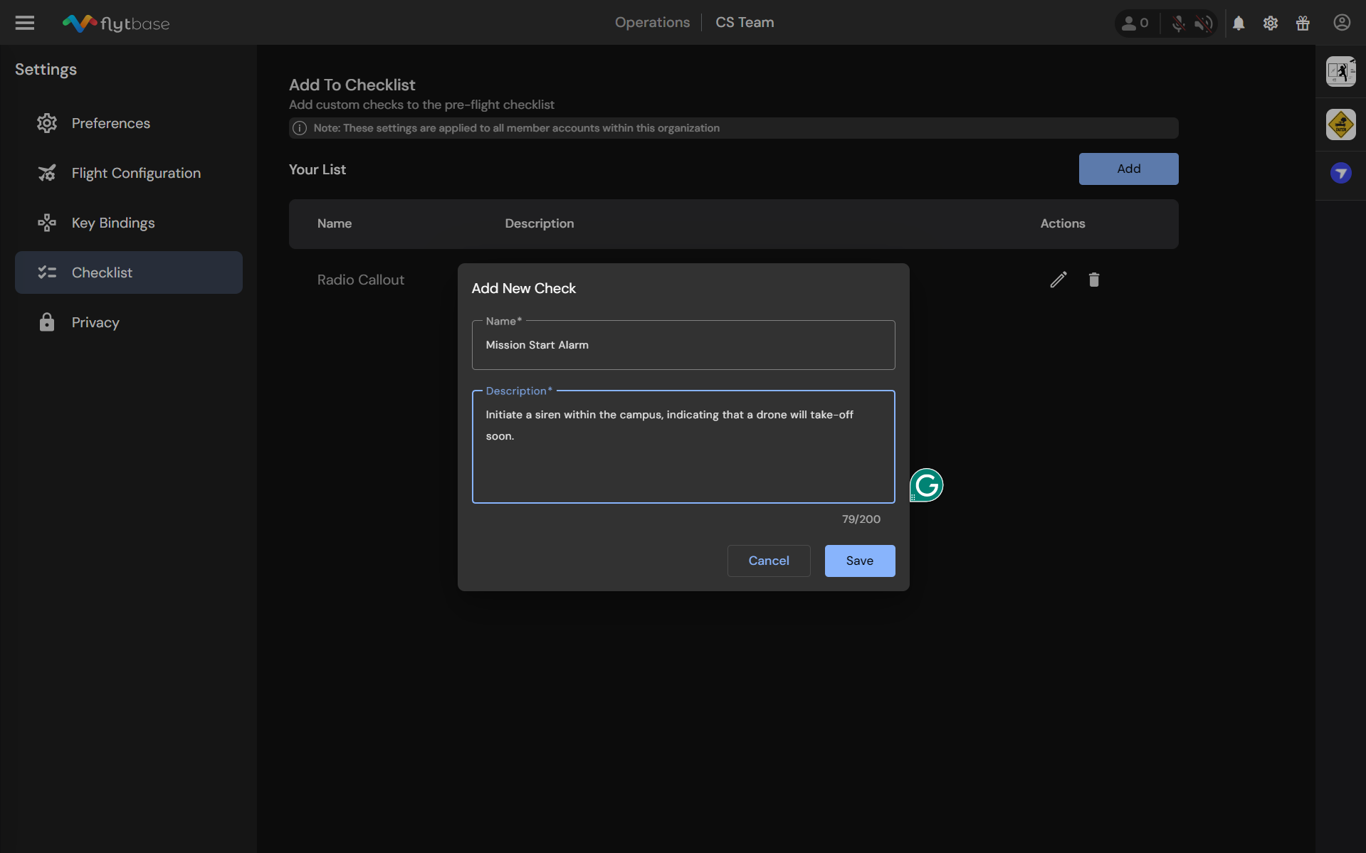 Once these changes are made, the updated checklist will be displayed before the drone is launched, thus ensuring that all checks are completed before a flight.